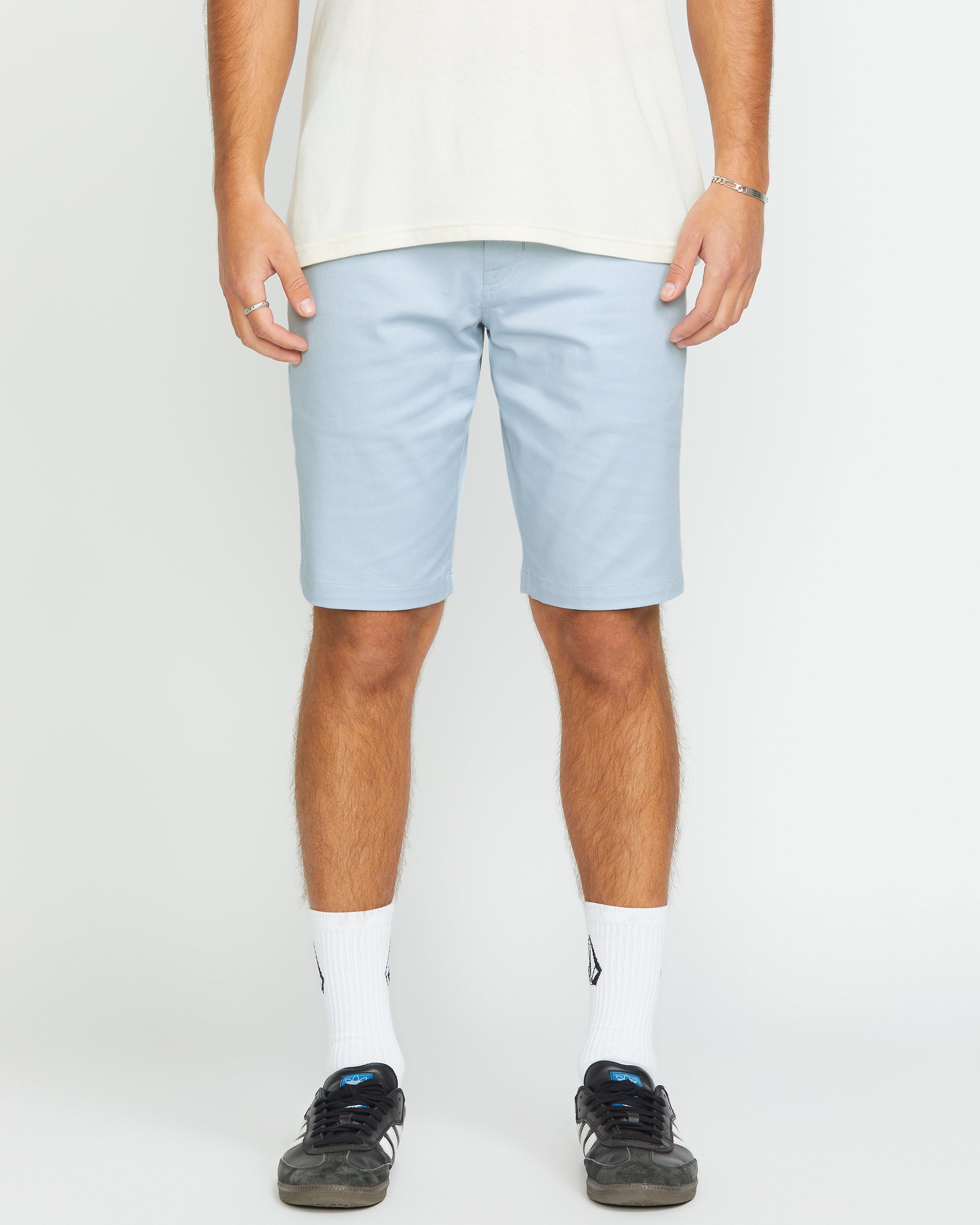 Sporty meets street in these modern cotton/poly stretch shorts. Breathable, pre-washed fabric fuses function and casual flair with a 21" outseam, 5-pocket styling and Volcom signature details.