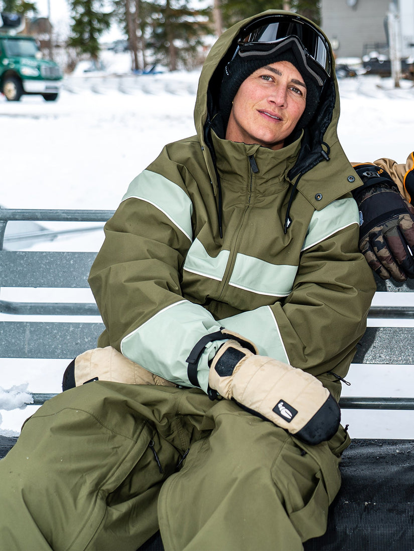 Desiree designed her outerwear collection to combat outdated gender and body-size stereotypes, intending to appeal to anyone and everyone who wants to wear it. Together we constructed the Des Fit. A new style anticipated to provide comfort and movement in a relaxed vintage silhouette, to work in any condition or terrain that winter can bring. The MELANCON GORE-TEX JACKET offers our state-of-art GORE-TEX 2-Layer Poly + PFCec Free, fully taped seams, Zip Tech® Jacket to Pant Interface, removable hood, removable and Adjustable Powder Skirt andmoments of custom art created by Desiree.