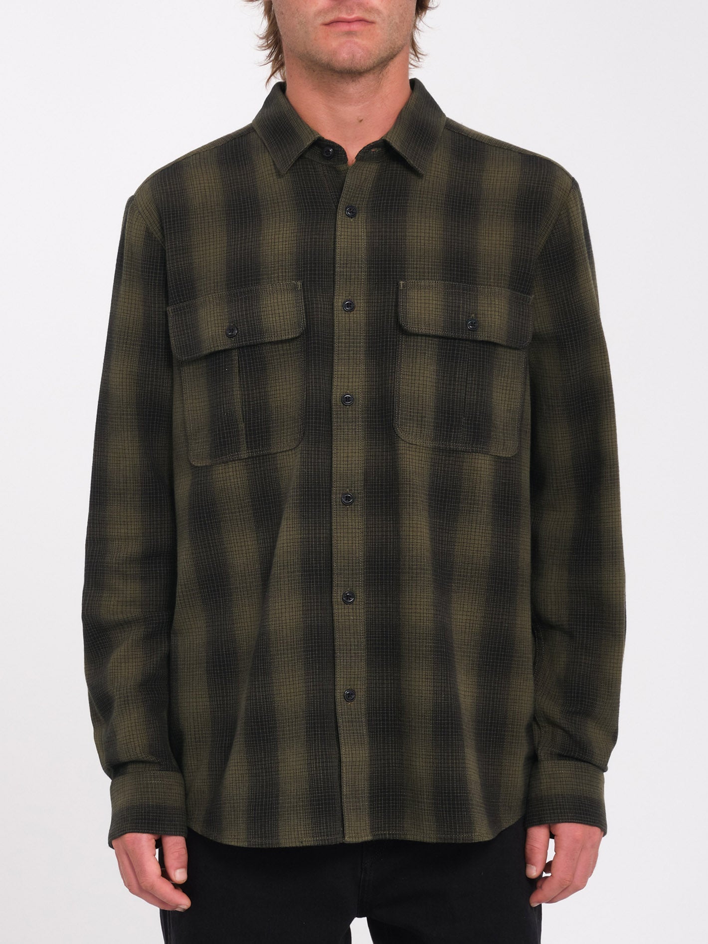 Stay cozy and on-trend this season with the Volcom Shadowstone Flannel Long Sleeve Shirt. Crafted from a soft cotton-acrylic blend, this classic-fit plaid shirt features two chest pockets, a subtle logo, and custom buttons for a timeless look.